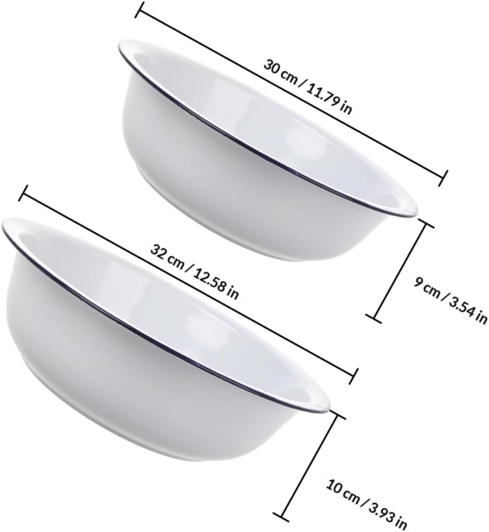 Package Include 2 x enamel basin Features -Ample capacity: with its large size, this basin for a variety of tasks, from dough making to washing vegetables, providing ample space for all your needs -Easy to clean: the smooth enamel surface is easy to clean and resistant to stains, ensuring that it looking new for longer meal prep bowl -Versatile use: ideal for washing vegetables, face, or laundry, this basin is a practical and versatile tool for any household food mixing bowl -Elegant appearance: the pure white enamel finish offers a classic and sophisticated look, enhancing the aesthetic appeal of your kitchen or bathroom deep flour bowl -Color:White -Size:32.00X32.00X10.00cm/12.58X12.58X3.93in -Sturdy and : made from thickened enamel, this basin is designed to withstand daily use, providing durability and reliability Fruit Washing Basin -Material:Enamel -Product Info:Enamel basin -Size:30.00X30.00X9.00cm/11.79X11.79X3.54inGoods Informationfood mixing bowl The smooth surface is easy to clean, and the thick construction they are built to last.Retro Basin Their vintage design adds a touch of charm to any kitchen.large enamel bowl These enamel basins are designed to meet all your kitchen needs.enamelware plate dish Whether you're preparing a large meal or simply washing fruits, these basins provide the solution
