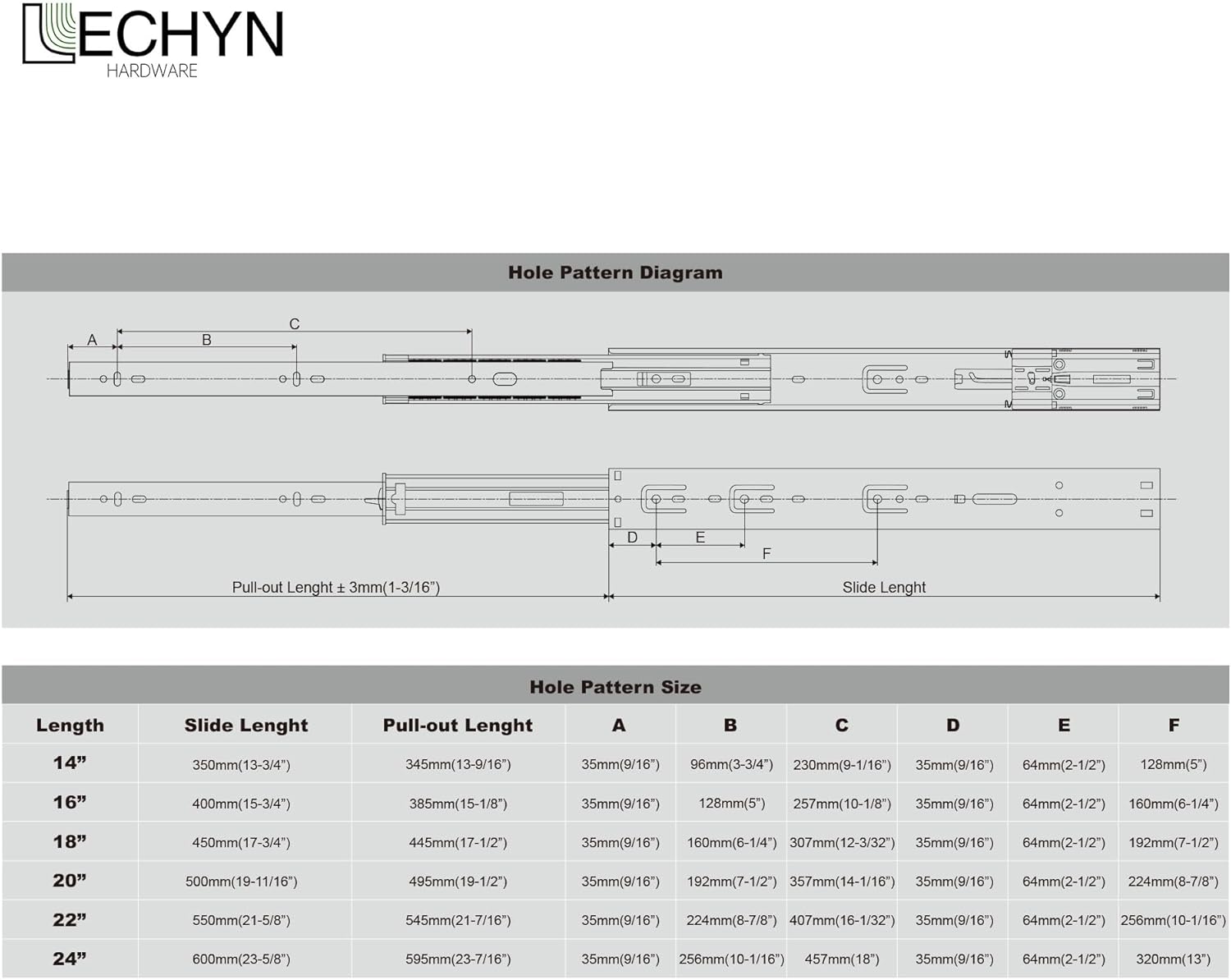 | Included Components | 9/16" (14mm) Stainless Steel Self-Tapping Screw, LECHYN 6 Pair Soft Close Drawer Slides 18 Inch |