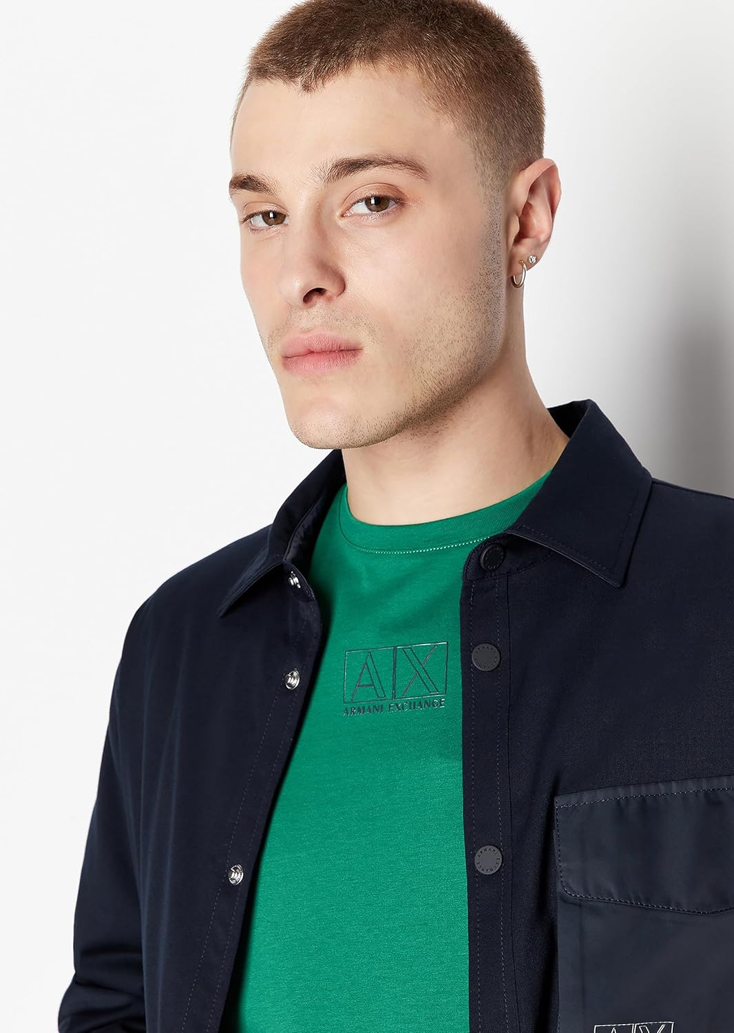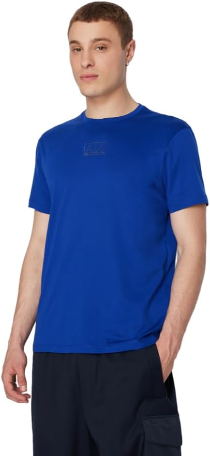 A|X Armani Exchange Crewneck Tee with small Box letter logo below neckline. Simple design on cotton, short sleeve t-shirt, in a regular fit.