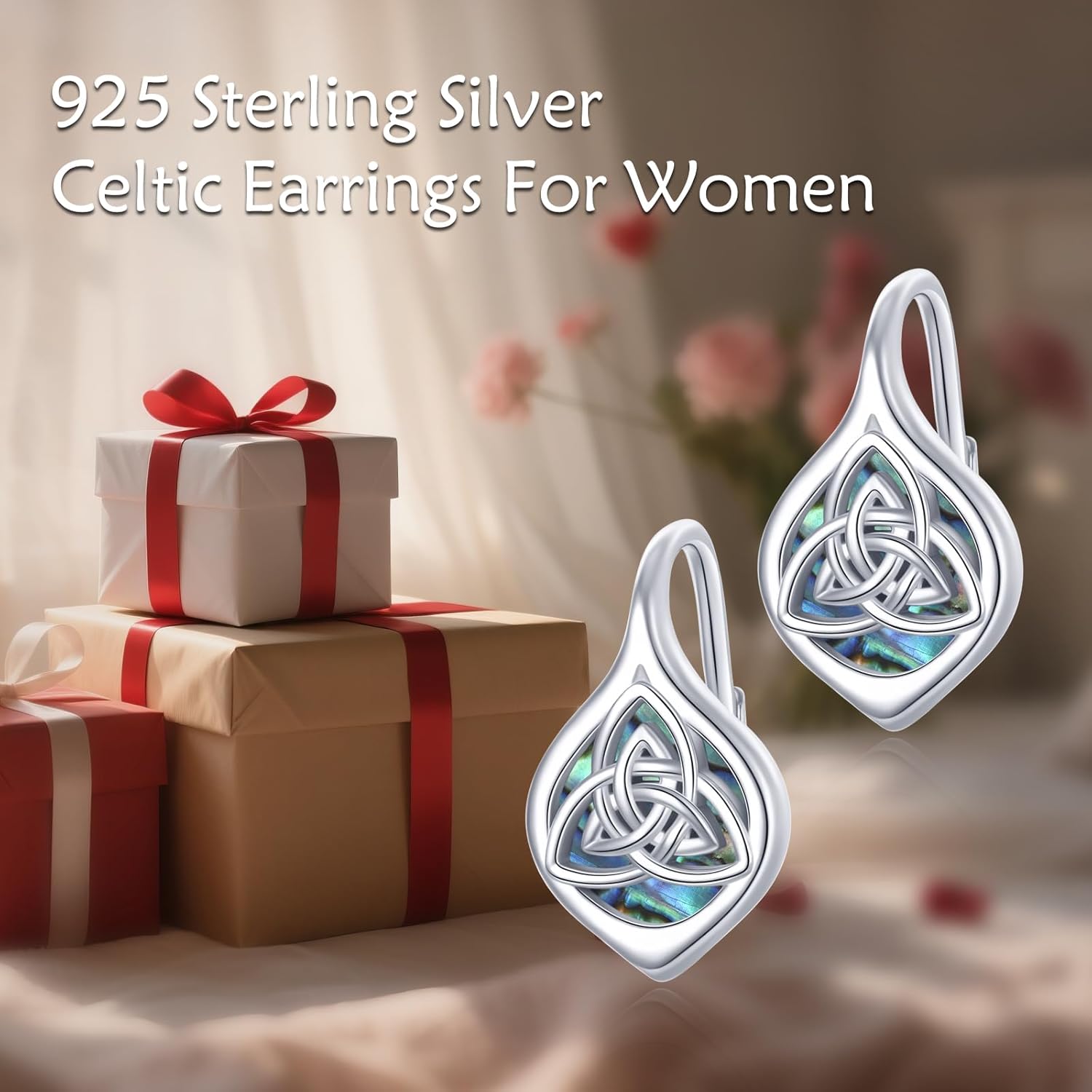 CUPENDA Celtic Knot Earrings 925 Sterling Silver Celtic Knot Abalone Shell Irish Jewelry for Women