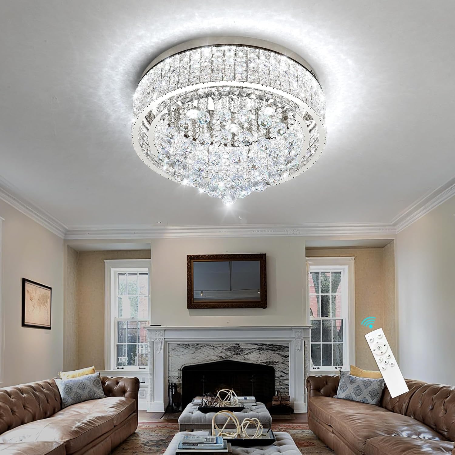 Dia 24" Crystal Chandeliers LED Dimmable Flush Mount Ceiling Light for Living Room Dining Room Bedroom LED Celing Lighting Fixture Silver
