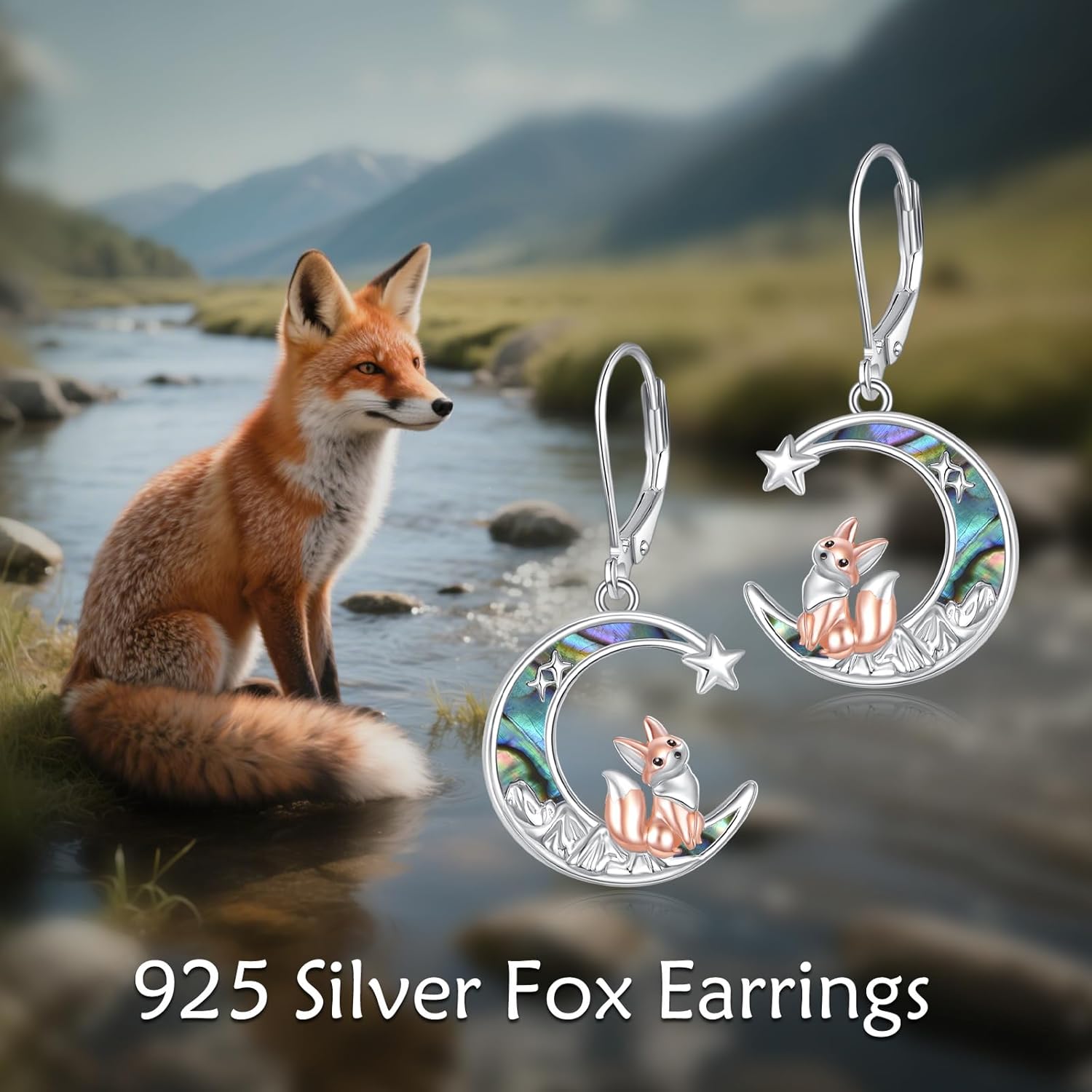 Fox Earrings 925 Sterling Silver Fox Dangle Drop Earrings Cute Animal Jewelry Gifts for Women