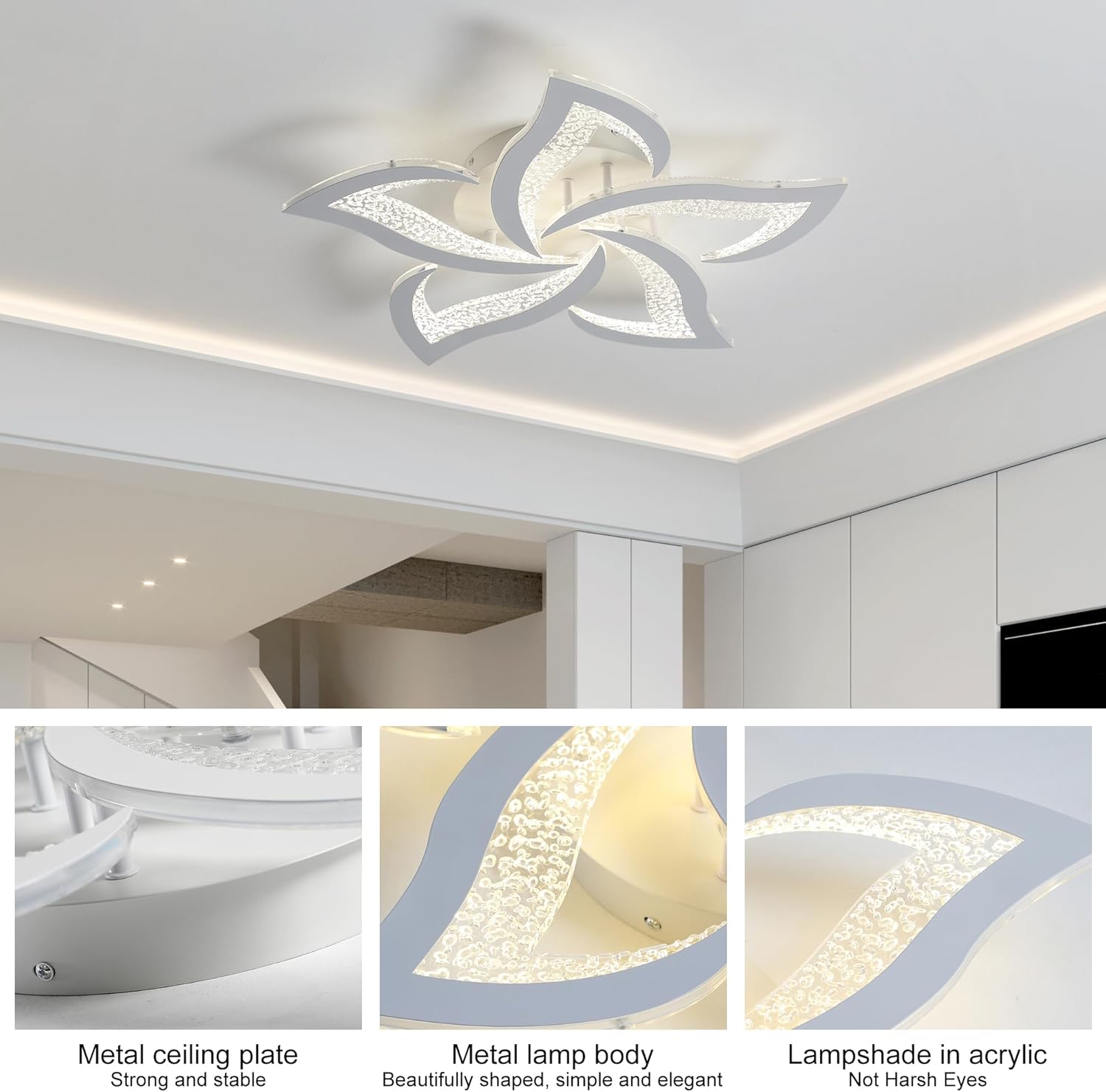 • High-Quality Led Ceiling Light Fixtures: Our bedroom chandelier ceiling light is made of high-quality iron and Acrylic materials with white paint finished. Anti-corrosion, anti-fading, not easy to rust. LED light source creates a more comfortable light environment.