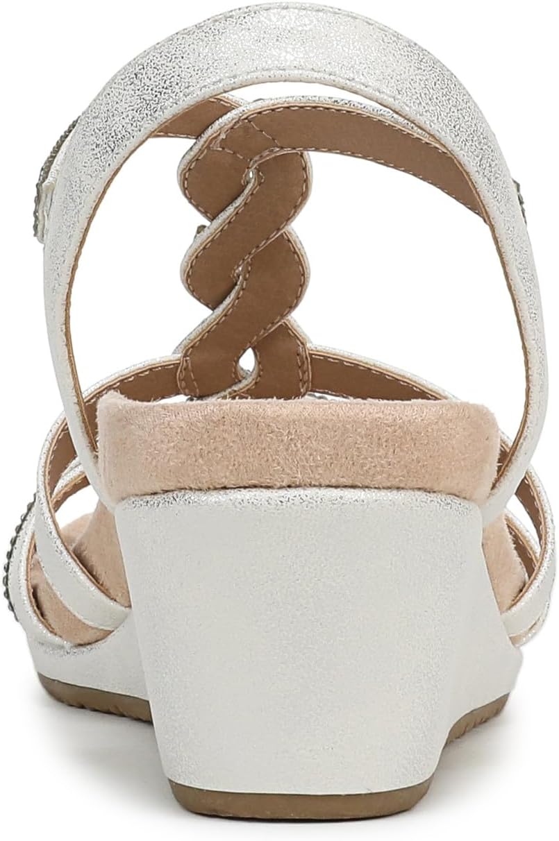 Celebrate everyday moments and special moments in these sparkly women’s wedges. Wedge sandals designed with faux leather, interwoven straps with rhinestone accents, and an easy slip-on fit with built-in stretch. Trusted Soft System® comfort technology for unmatched cushion, support, and flexibility in every pair. Traction sole for extra stability. Just Right Height 1 7/8 inch wedge heel.