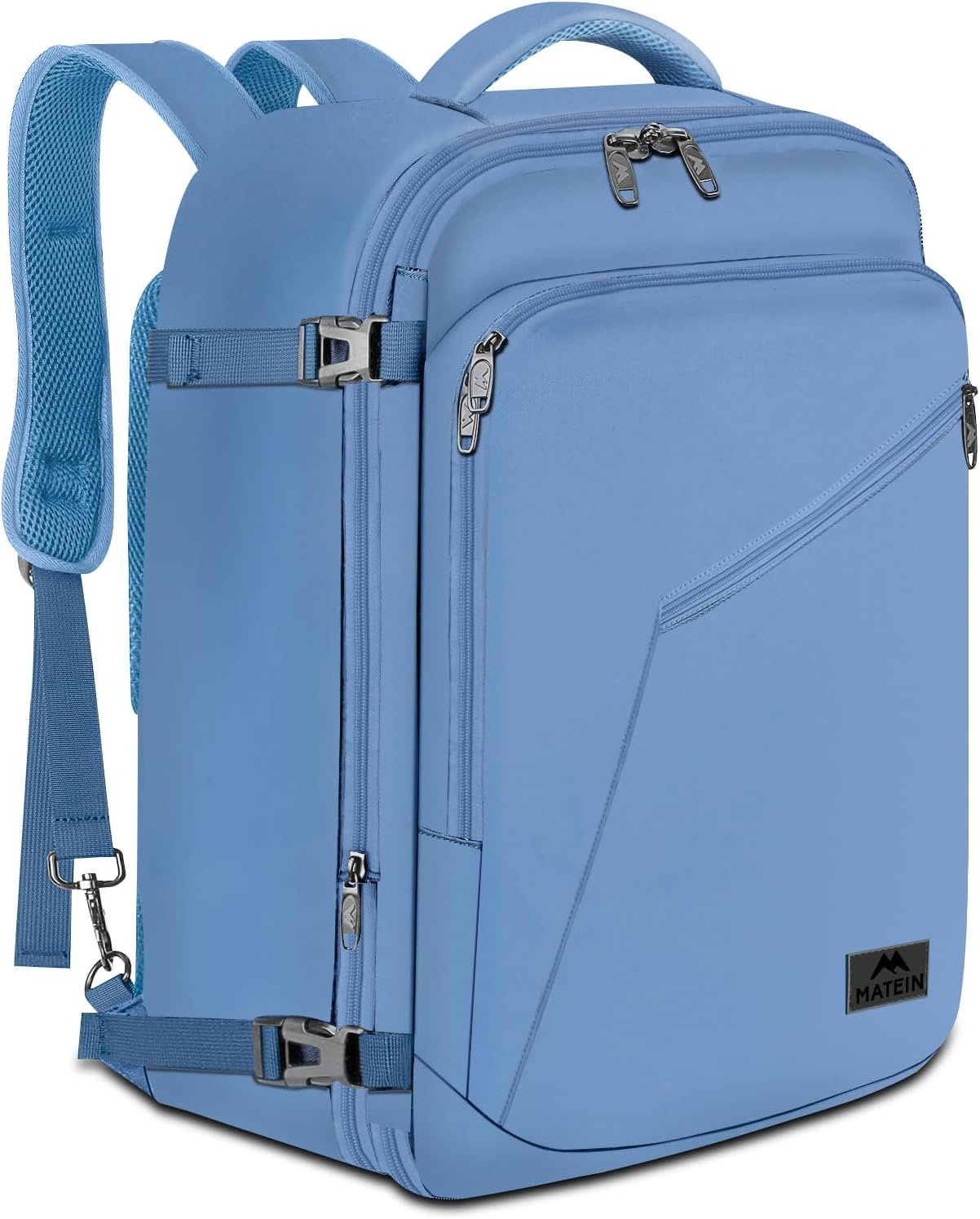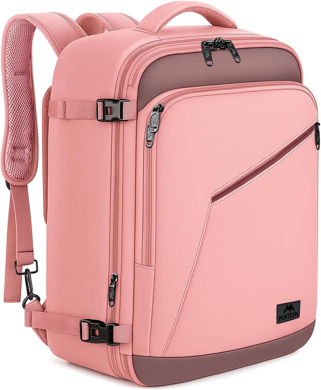 Extral Large Travel Backpack: 1.The roomy main oversized compartment with full-perimeter zip allows to easily open and packing the bag, which offers you a large storage space for clothes, packing cubes, toiletry bags, camera gear, and daily necessities, travel accessories etc.. Well design for travelers, weekenders 2.Inner adjustable straps in the main compartment are adjustable in length, keeping your travel items from rolling. 3.Mesh organizer pocket for travel essentials, from passport to wires or any other thin accessories. 4.One convenient front pockets: for small items like ipad, earphone Tips for Better Travel with This Bag: 1.Travel backpack comes with top and side handles for safe lifting it from trunks and overhead compartments. Fathers day gifts, mothers day gifts. 2.The carry on backpack can also be loaded on a rolling luggage handle thanks to its luggage / suitcase strap. 3.Compression straps are carefully placed to provide maximum compression and reduce stress on the zippers. 4.Full expansion zipper adds over 15% of the packing space, very useful to get an inch or two more of vertical space if needed 5.Adjustable sternum strap can reduce the stress of your shoulder. 6.The padding on this backpack is comfortable whether carrying the backpack in your hands, or back your bag. 7.The zipper head is lockable so that you can lock the bag for security. Normal Size: 19*13*6 Inch Expanded Size: 19*13*8Inch Weight: 2.2 lb Capacity: 40L