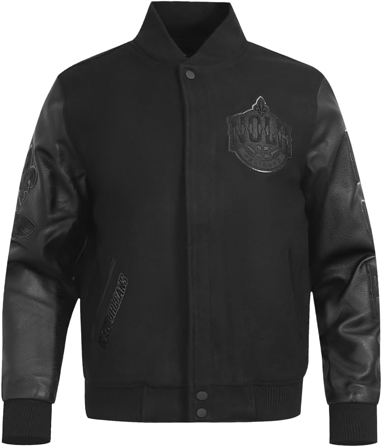 Level up your fan style with the Men's NBA Classic 3Bk Wool Pu Varsity Jacket. The Triple Black collection merges sleek sophistication and bold flair