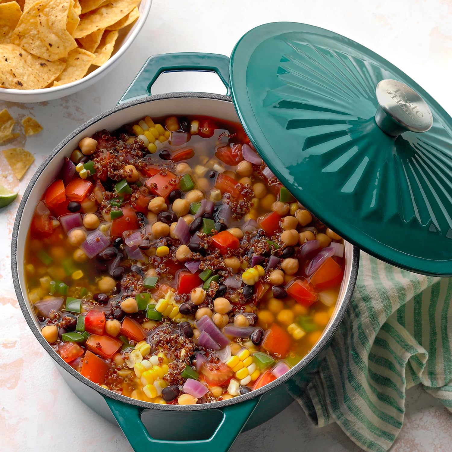 • Consists of 1 - 5 Quart Enameled Cast Iron Dutch Oven and 1 Silicone 3-in-1 Tool Set