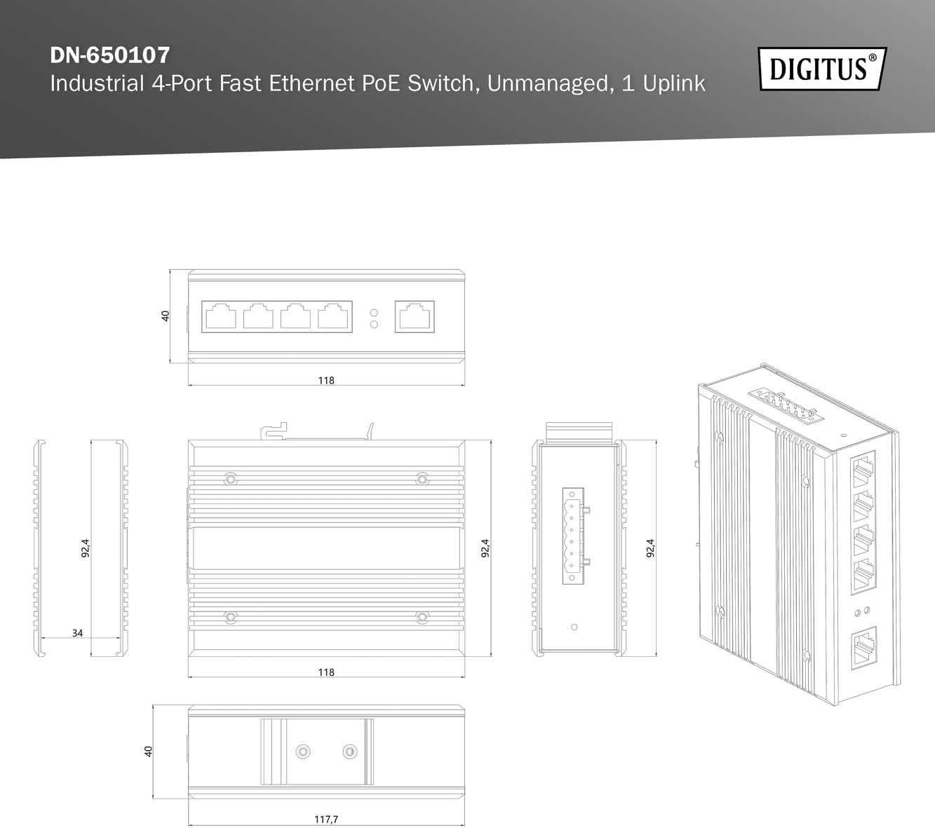 | BuiltIn Media | Industrial 4-Port Fast Ethernet PoE Switch + 1 uplink port |
