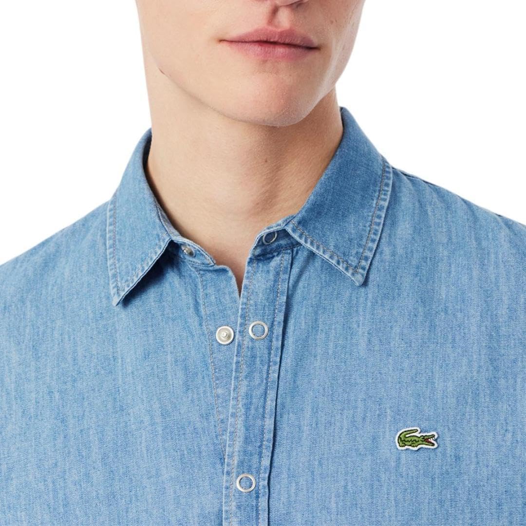 This shirt combines Lacoste elegance and expertise. Made from lightweight denim with a subtle wash, contrast topstitching, and metallic-edged snaps.