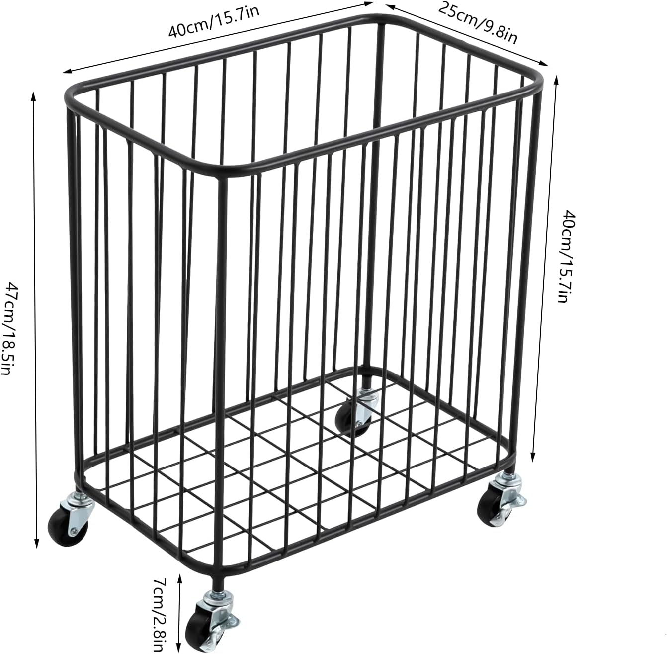 DetailsSmooth Corners & Edges: This design makes you more comfortable and safe to use.Large Opening: It makes it easy for you to access your clothes.ApplicationIt can be used in bathrooms, laundry rooms, bedrooms, living rooms, and other spaces to store clothes, toiletries, or other miscellaneous items.SpecificationMaterial: IronProcess: High-temperature Baking PaintStyle: ModernShape: RectangularColor: BlackMounting Type: Floor StandingAssembly Required: YesMax. Load Capacity: Approx. 40kg/88.18lbsProduct Size: 40*25*47cm/15.7*9.8*18.5inPackage Size: 55*45*45cm/21.65*17.72*17.72inGross Weight: 3kg/6.61lbsNet Weight: 2.5kg/5.51lbsPackage Included1* Laundry Basket4* Wheels1* WrenchNotesPlease check the size carefully before ordering.