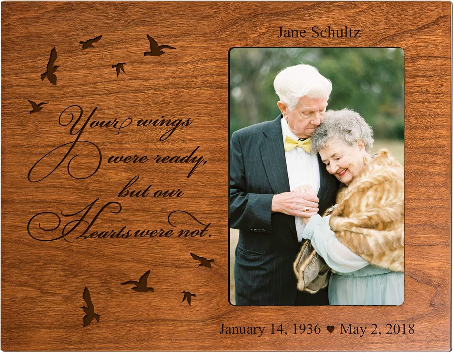 With their beautifully engraved INSPIRATIONAL messages, LifeSong Milestones Condolence Photo Frames keep the memory of loved ones on display, which is even more important when they are no longer with you. With our quality selection of bereavement memorial sympathy picture frame gifts, you'll be able to create a lasting memory to honor your friends and family who have passed on. With a TOUCHING verse and a GRACEFUL SILHOUETTE these memorial keepsake items are sure to be a touching tribute to the importance of family and friends that will be cherished for years to come. IN LOVING MEMORY to honor the loss of parents, mother, father, husband, wife, child, grandmother, grandfather, baby, aunt or uncle, and friends with our beautiful keepsake gifts. Each of these condolence gifts are comforting gifts of remembrance for the loss of a loved one who has passed away. This is a great gift for a friend or family member who grieves the loss of a loved one, such as husband, wife, sister, brother, mother, father, grandma, grandpa, aunt, uncle, son, daughter, child. Made in the USA and Designed exclusively by 2020 LifeSong Milestones