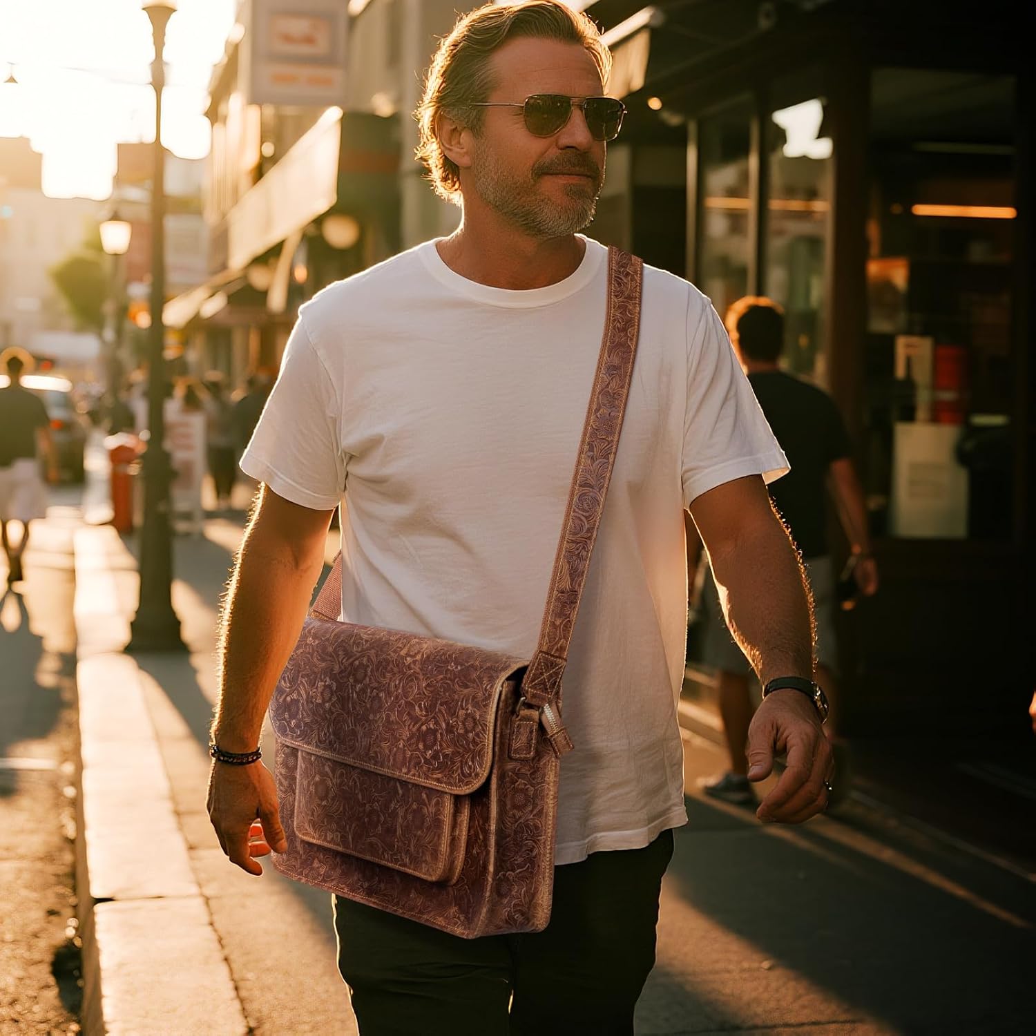 The cowhide is embossed with Tang grass patterns, giving it a firm touch, a strong texture and a classical and beautiful appearance. The large-capacity design features a laptop slot and a multi-purpose pocket, capable of holding a 14-inch laptop and other items. The hardware of the bag is made of pure copper, which is sturdy and durable. The shoulder strap is double-sewn. The outer layer is made of the same genuine leather as the bag, and the inner layer is made of soft canvas, which is both beautiful and gentle.